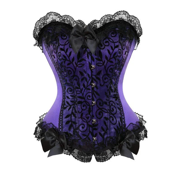 Caudatus Fashion Womens Sexy Bow Lace Brocade Corset Bustier Lingerie Shapewear Green Purple Corselet Overbust Plus Size