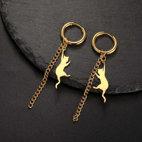 Transform your style with the exquisite Eueavan Jumping Cat Dangle Earrings, made of durable stainless steel and featuring charming tassel hoops. These earrings are a must-have for any animal lover, and make perfect gifts for the special women and girls in your life. Let these cute kitten earrings add a touch of playfulness and elegance to your look!