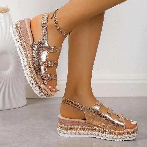 Experience ultimate comfort and style with these Open Toe Platform Sandals! Feel confident and empowered as you step out in these stylish and supportive sandals.