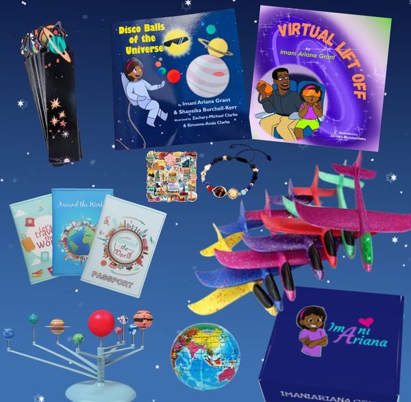 Enjoy a flight to the galaxy as you learn about how planes fly and also explore the 8 planets of our solar system, with Imani's books titled, Disco Balls of the Universe and Virtual Lift Off.