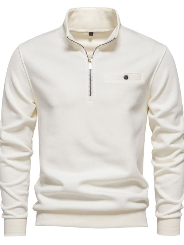 Experience ultimate comfort and style with our Men's Quarter Zip Long Sleeve Sweatshirt. Elevate your wardrobe with this versatile and fashionable piece that will keep you warm and looking great all day long.