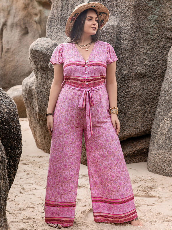 Plus Size V-Neck Cap Sleeve Wide Leg Jumpsuit
