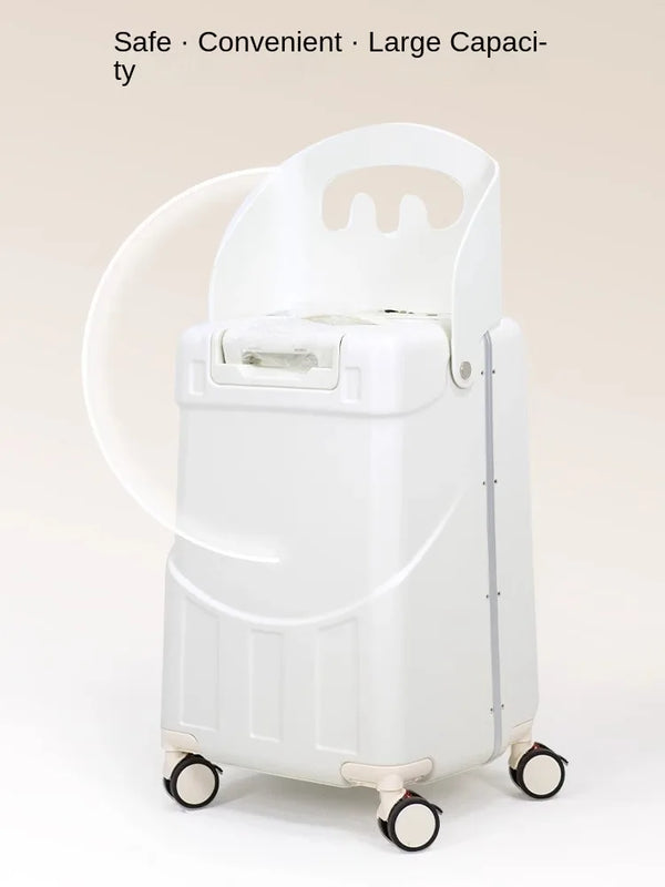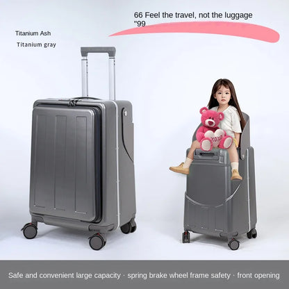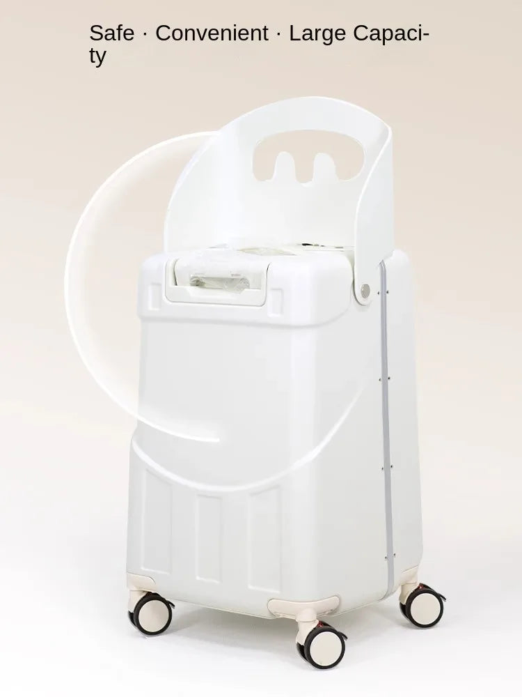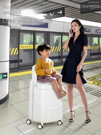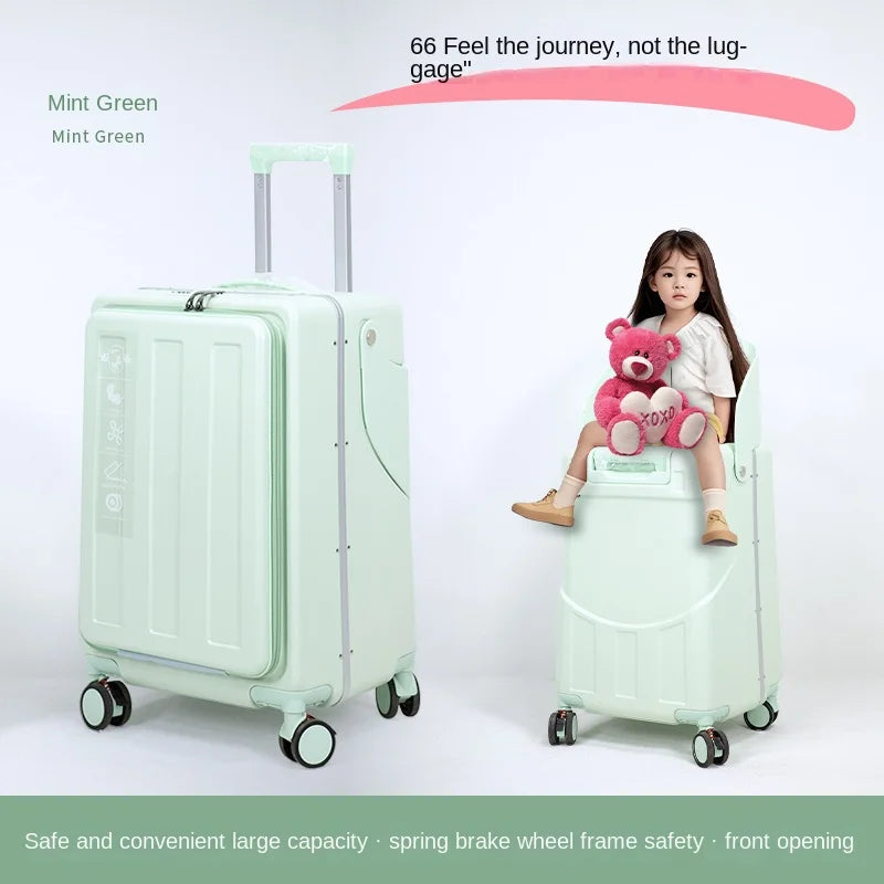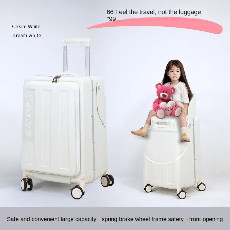 Innovative Kids' Travel Companion: Wheeled Suitcase with Built-in Seat. Premium ABS+PC Construction Makes This 20/22-Inch Trolley Case Perfect for Young Travellers. Boardable Design Transforms Airport Waits into Fun Rides for Kids on the Go.