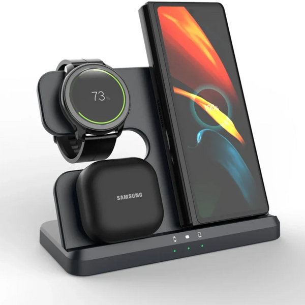I love this charging station! It charges all my devices quickly, and I love how it eliminates the mess of cables. I can charge my phone, earbuds, and watch all at once—such a time-saver! Definitely recommend!