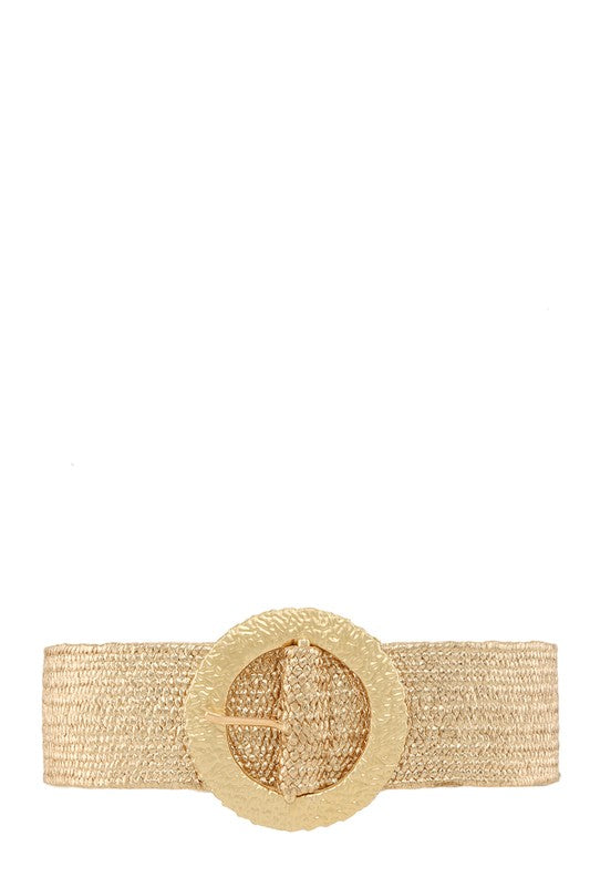 This Metal Round Buckle Elastic Belt adds a touch of sophistication to any outfit. The metallic round buckle not only adds flair, but also ensures a snug and comfortable fit. Elevate your style game while enjoying the versatile elastic material that allows for easy and adjustable wear.