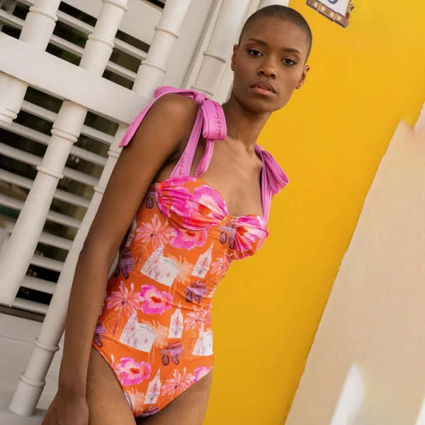 Enhance your beach presence with this figure-flattering one piece swimsuit featuring push-up design and included cover up. The 2025 collection showcases stunning patchwork detailing that creates a slimming silhouette. This versatile bodysuit transitions effortlessly from poolside to beachside gatherings, making it an essential addition to your summer wardrobe.